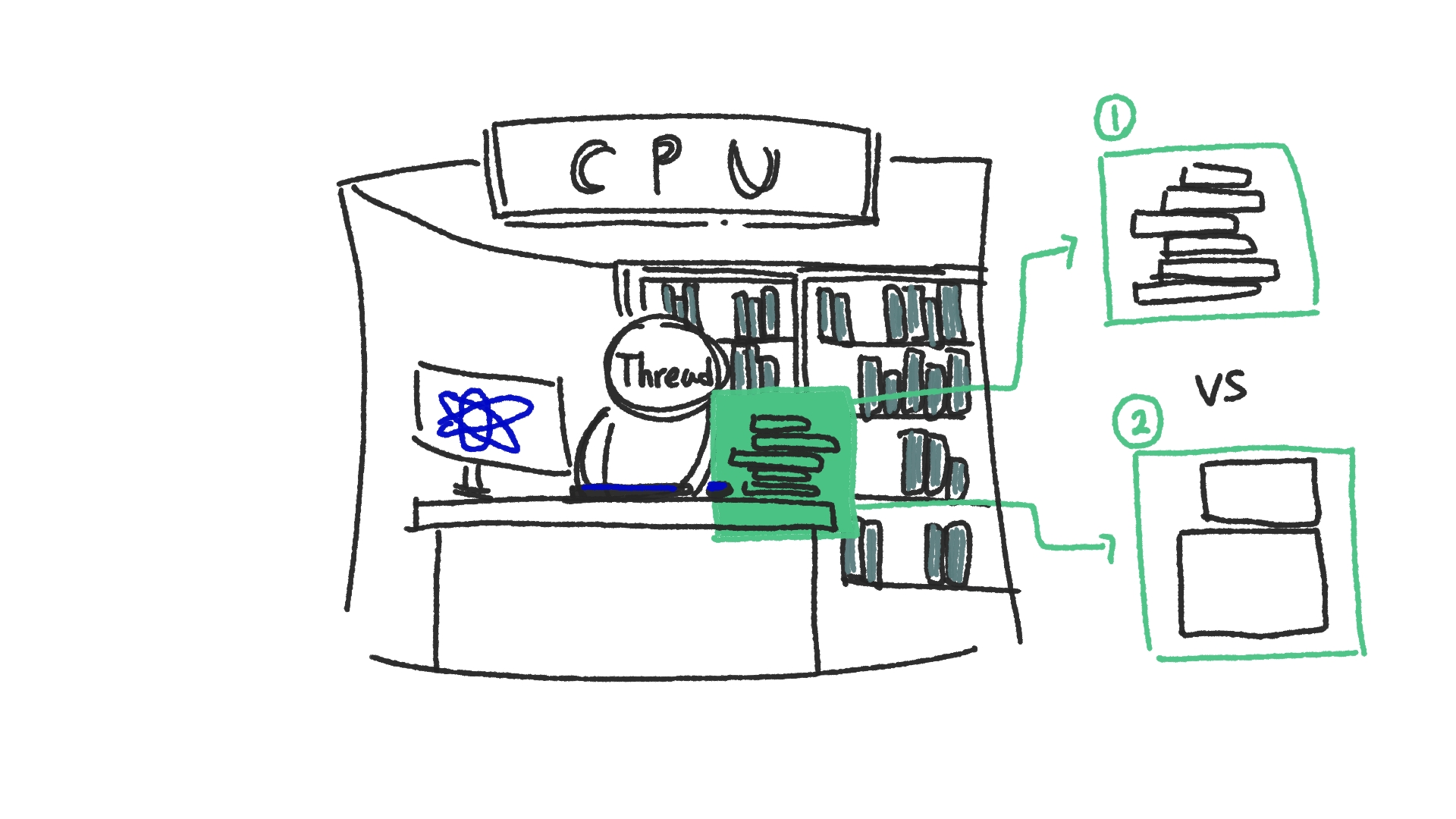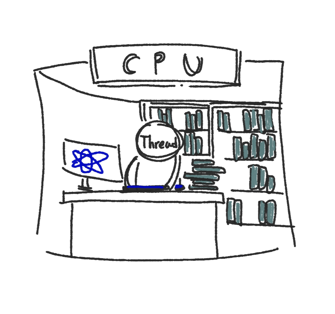 쉽게 말해... 일을 하고 있는 사람이 한 명 뿐이라고 생각하면 됩니다.